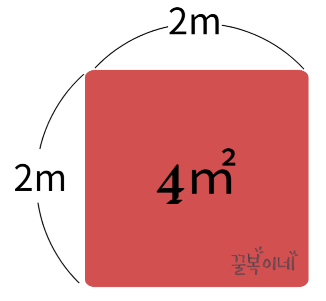 즉 길이와 길이를 곱하면 면적을 구할 수 있습니다. 그럼 4㎡의 경우에는 2m × 2m = 4㎡가 되는 것입니다.