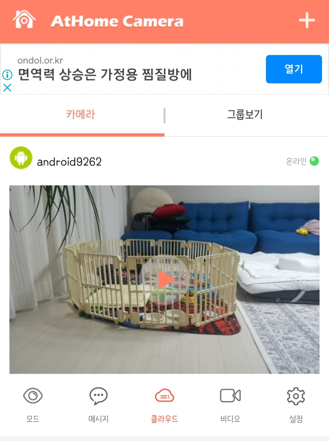 홈캠으로 사용할 공기기 어플 속에서