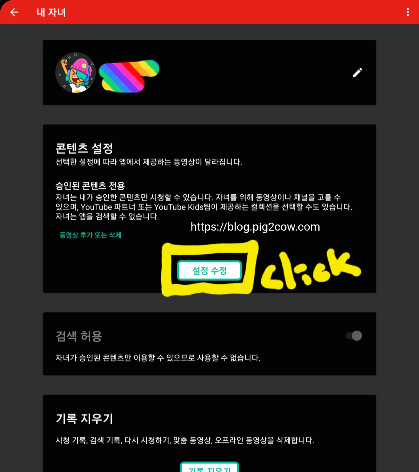 여기서는 자녀 보호 기능 및 설정을 사용하는 것 외에도