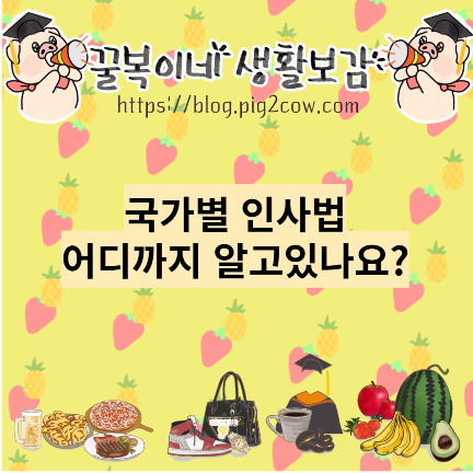 2022.10.08 - [생활보감/알쓸정보] - 나라별 매너와 에티켓(Country manners and etiquette)Ⅰ- 미국