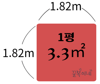 가로길이(1.82m) × 세로길이(1.82m) = 3.3124㎡