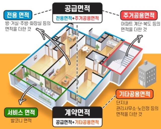'계약면적 = 전용면적 + 주거공용면적 + 기타공용면적+주차장 면적'