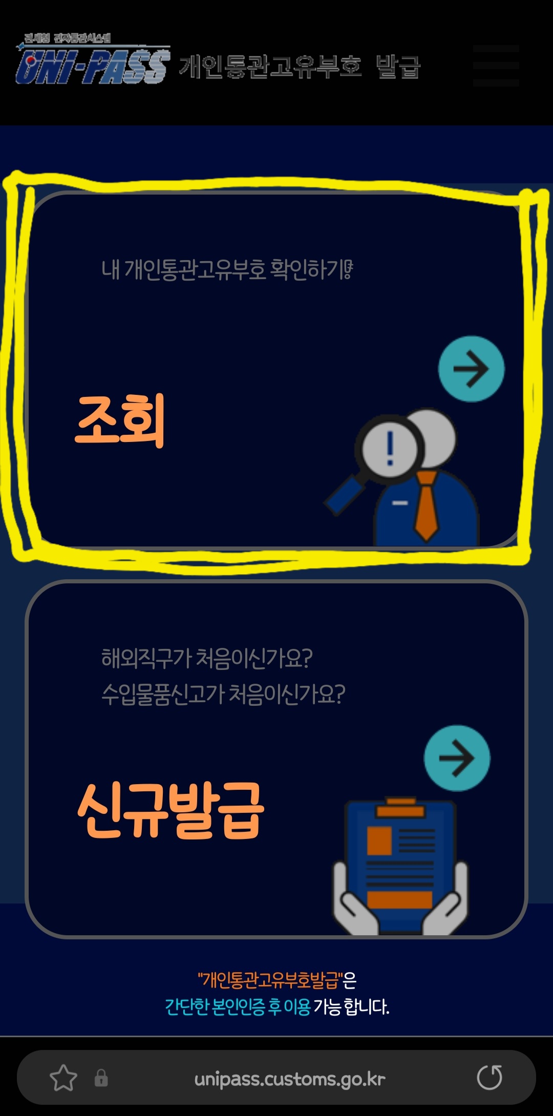 개인 통관고유부호 발급 및 조회방법