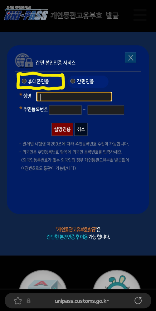 •유니패스 개인통관 고유부호 발급 사이트에 방문합니다.