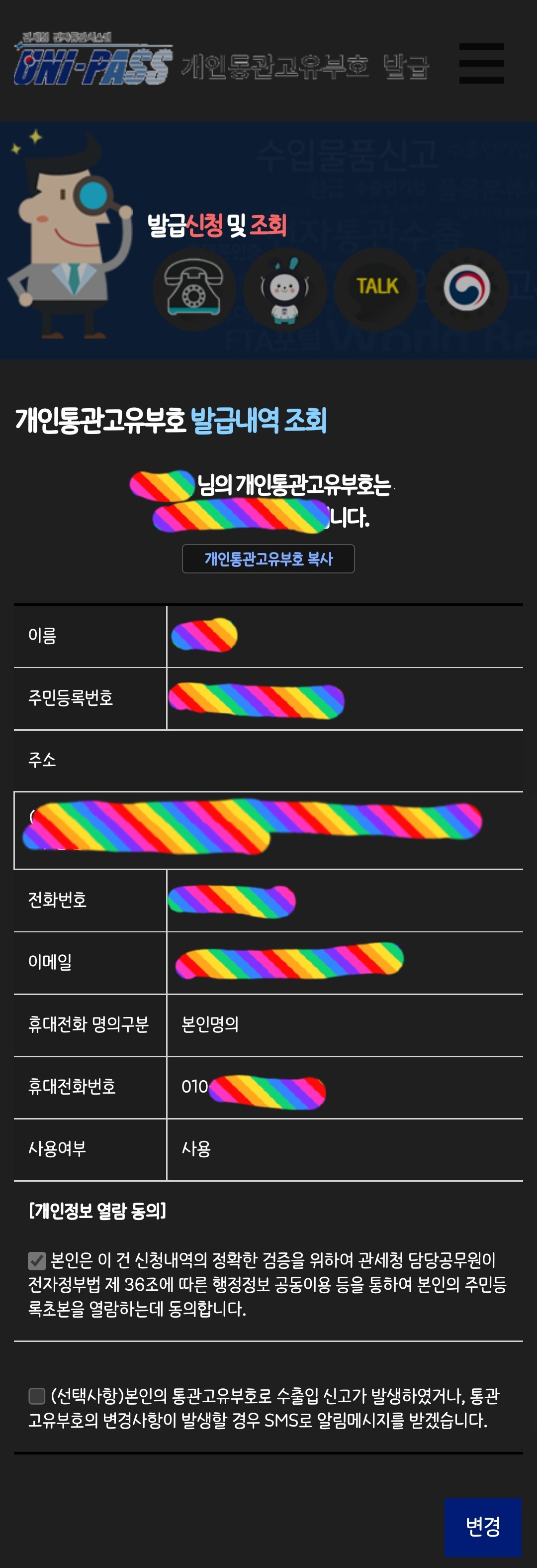 4. 인증이 완료되면 해당 개인통관 고유부호를