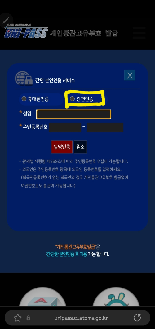 간편 인증은 해당 인증방법을 통하여