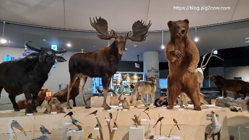 전시된 동물들을 구경하다