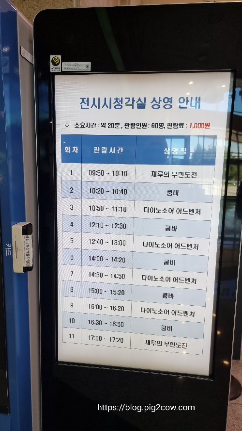 경북 상주 국립낙동강생물자원관 4D 상영시간표