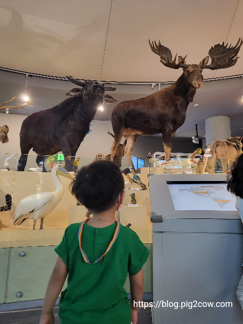 전시된 동물들을 구경하다