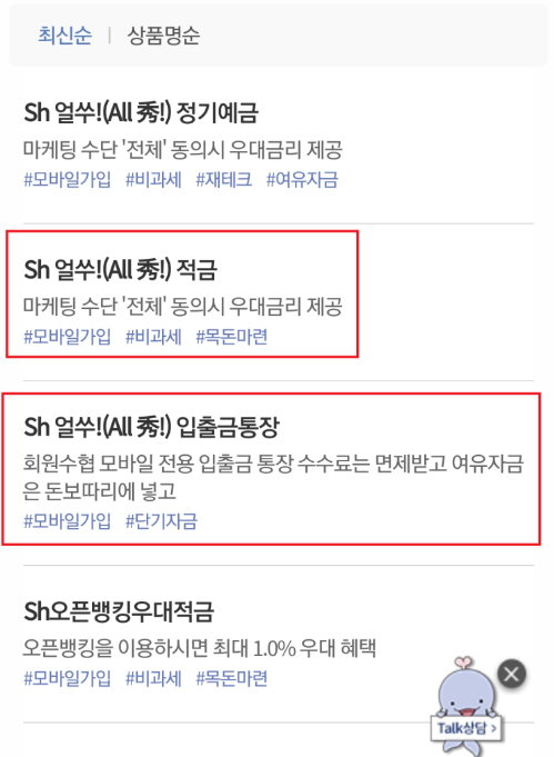 적금은 금융상품 -> 비대면 전용상품 -> 얼쑤 적금-> 금리 조회(구룡포수협 선택)
