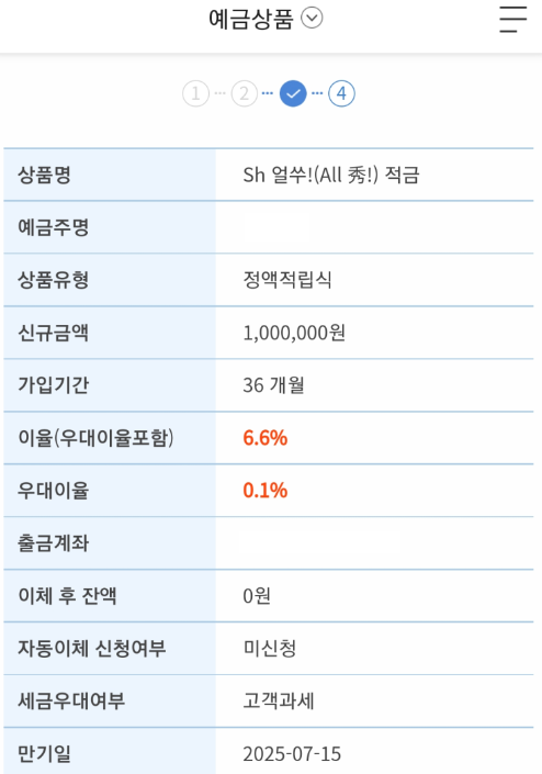 가입할 때 마케팅 다 선택하면 0.1 우대금리 받기 때문에최종적으로 6.6 금리 적용