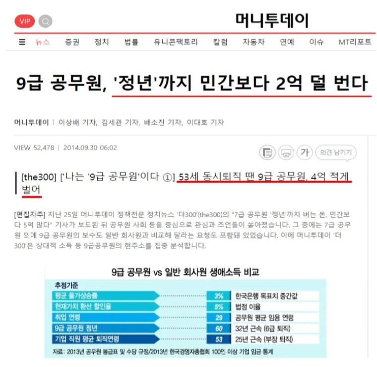 여기서 낮은 보수에 대한 경우는 현재 기준 교사, 경찰 등의 특수한 직업 이외에 일반 공무원의 경우는 100인 이상 민간 사업장 기준으로 비교해 보았을 때 80%도 못 미치고 있는 실정이다.