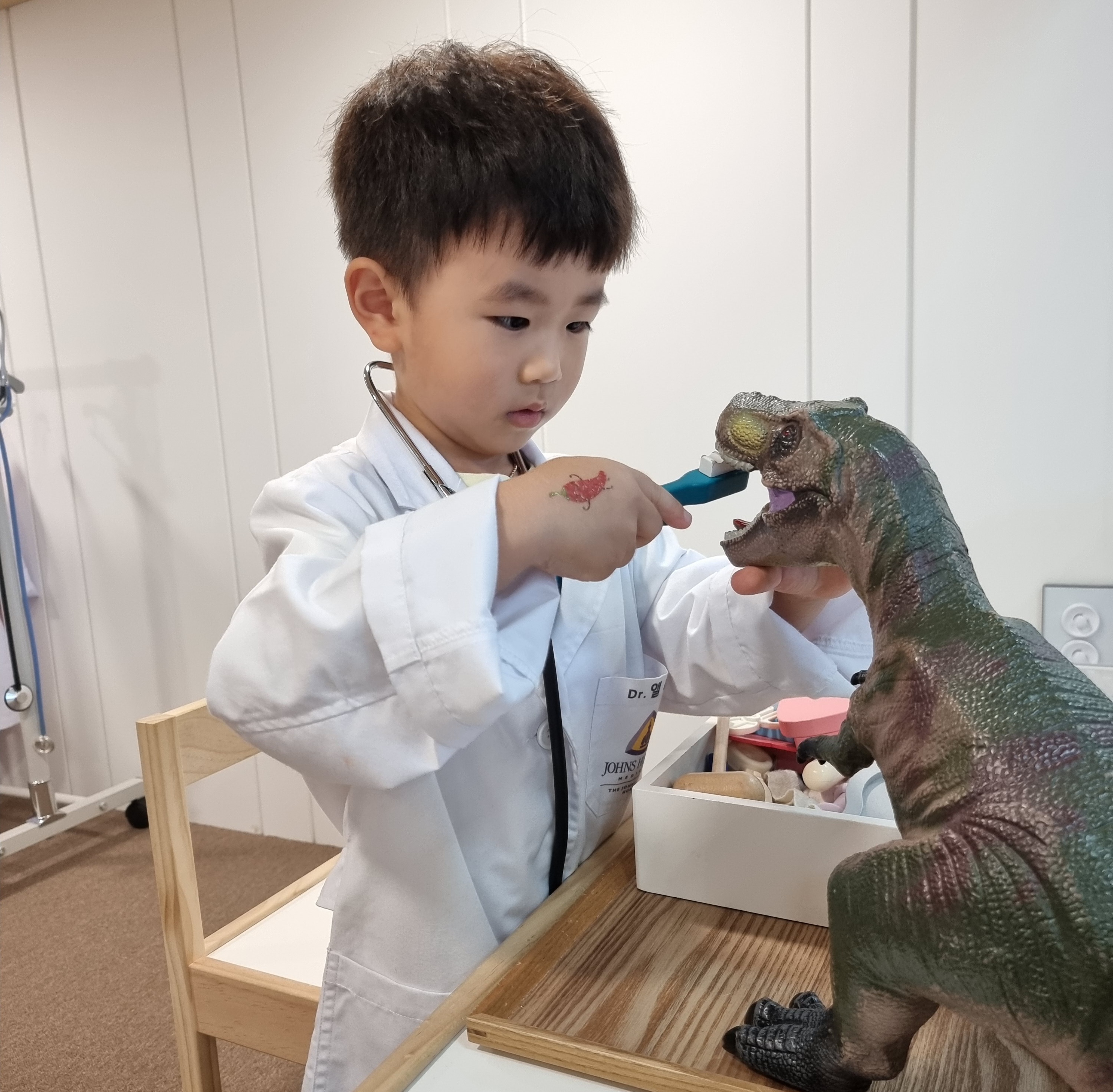 그리고 의사도 되어 아픈 공룡 친구들을 치료도 해주고, 경찰이 되어 나쁜 사람(아빠)을 직접 뛰어가 잡아 보기도 했답니다.