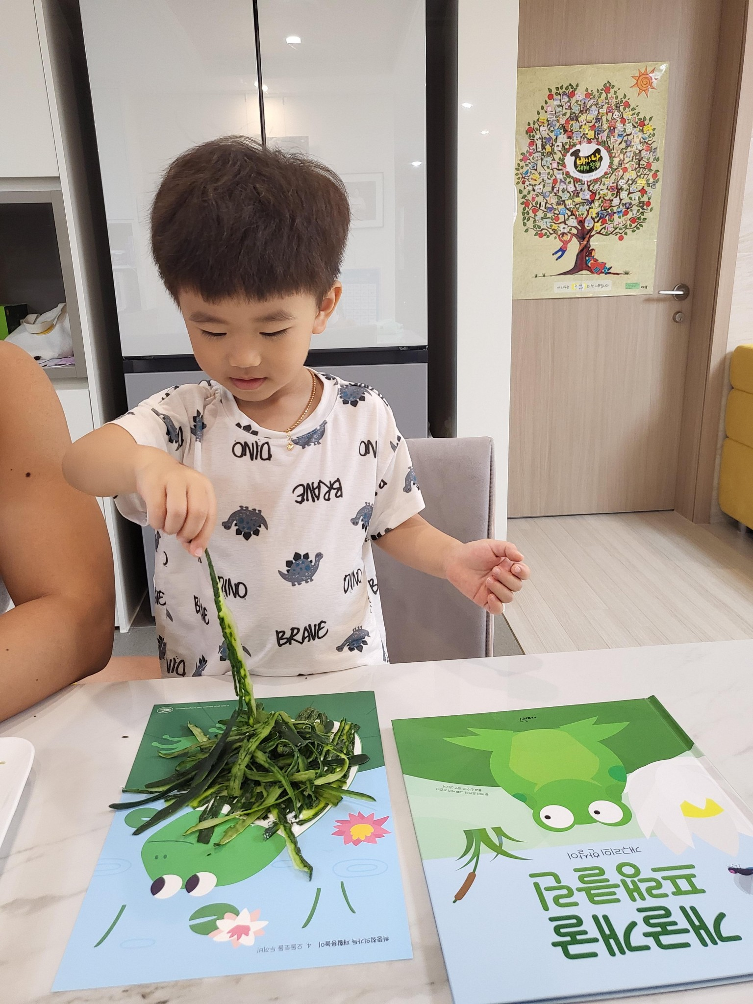 오이껍질을 이용하여 개구리를 만들며 독후활동을 진행하였습니다.