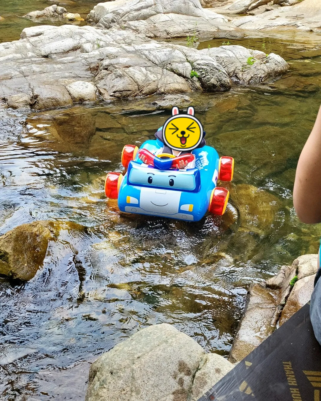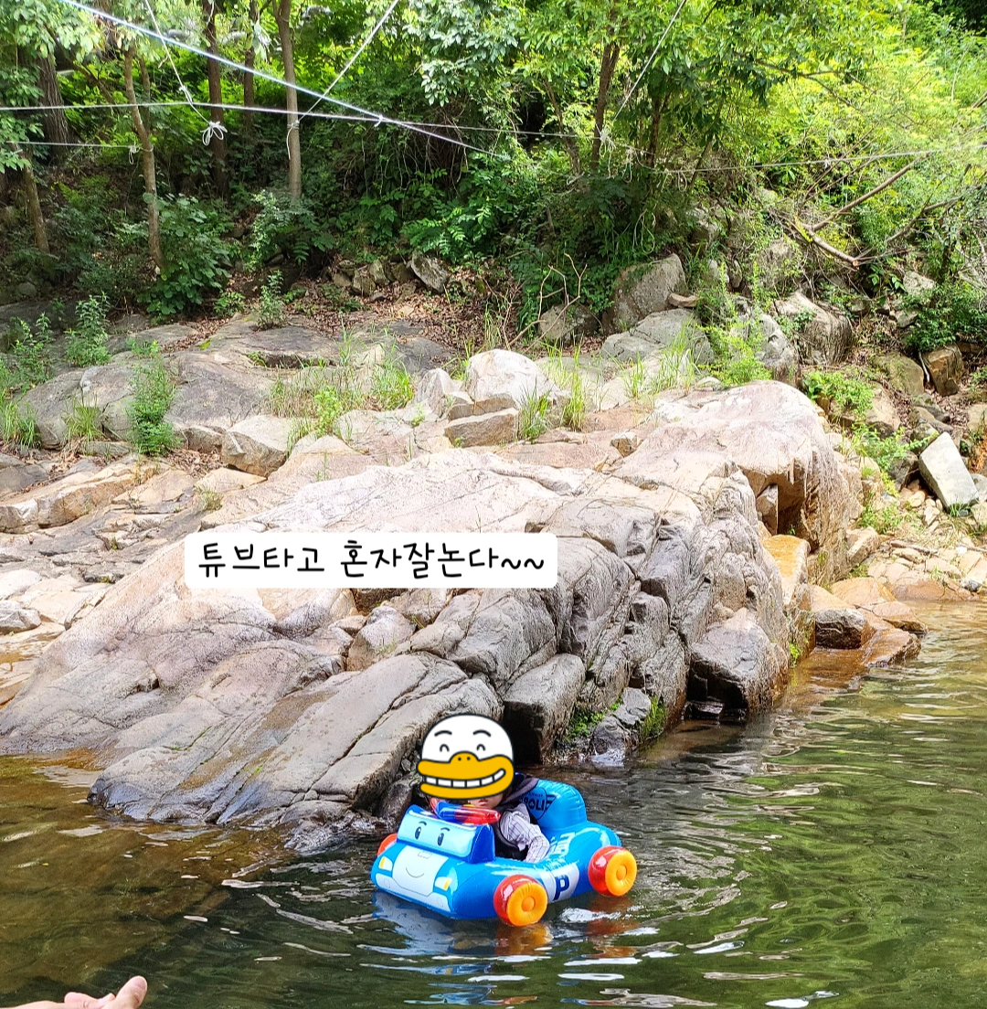 처음엔 물이 차갑다고 들어가기 망설이더니 금방 적응해서는 튜브 타고 둥둥~~