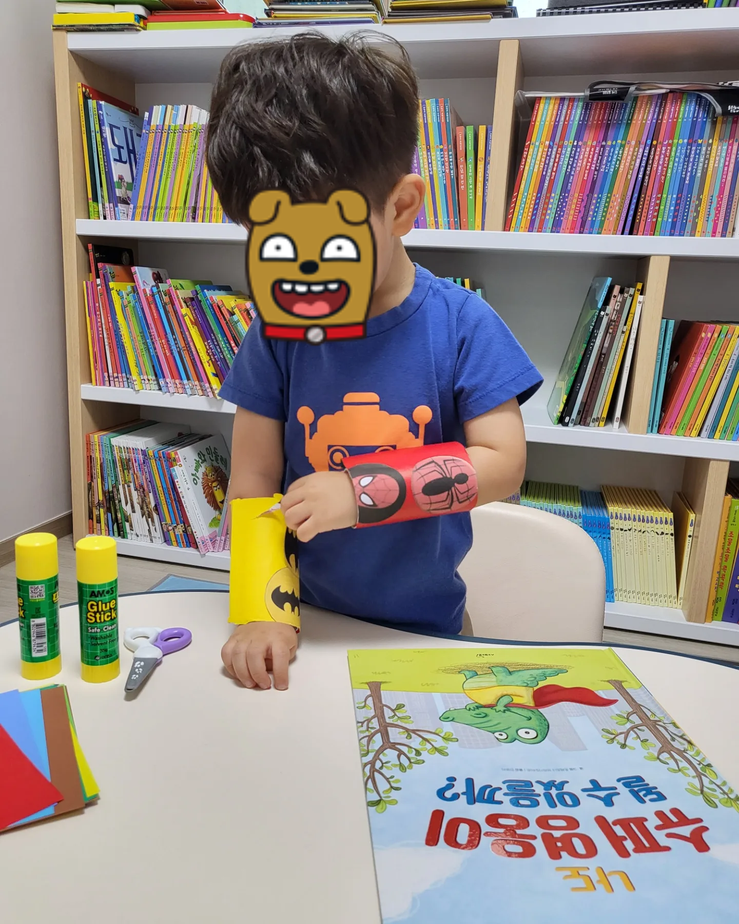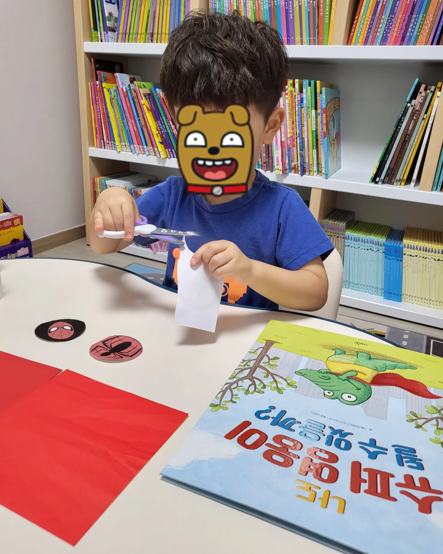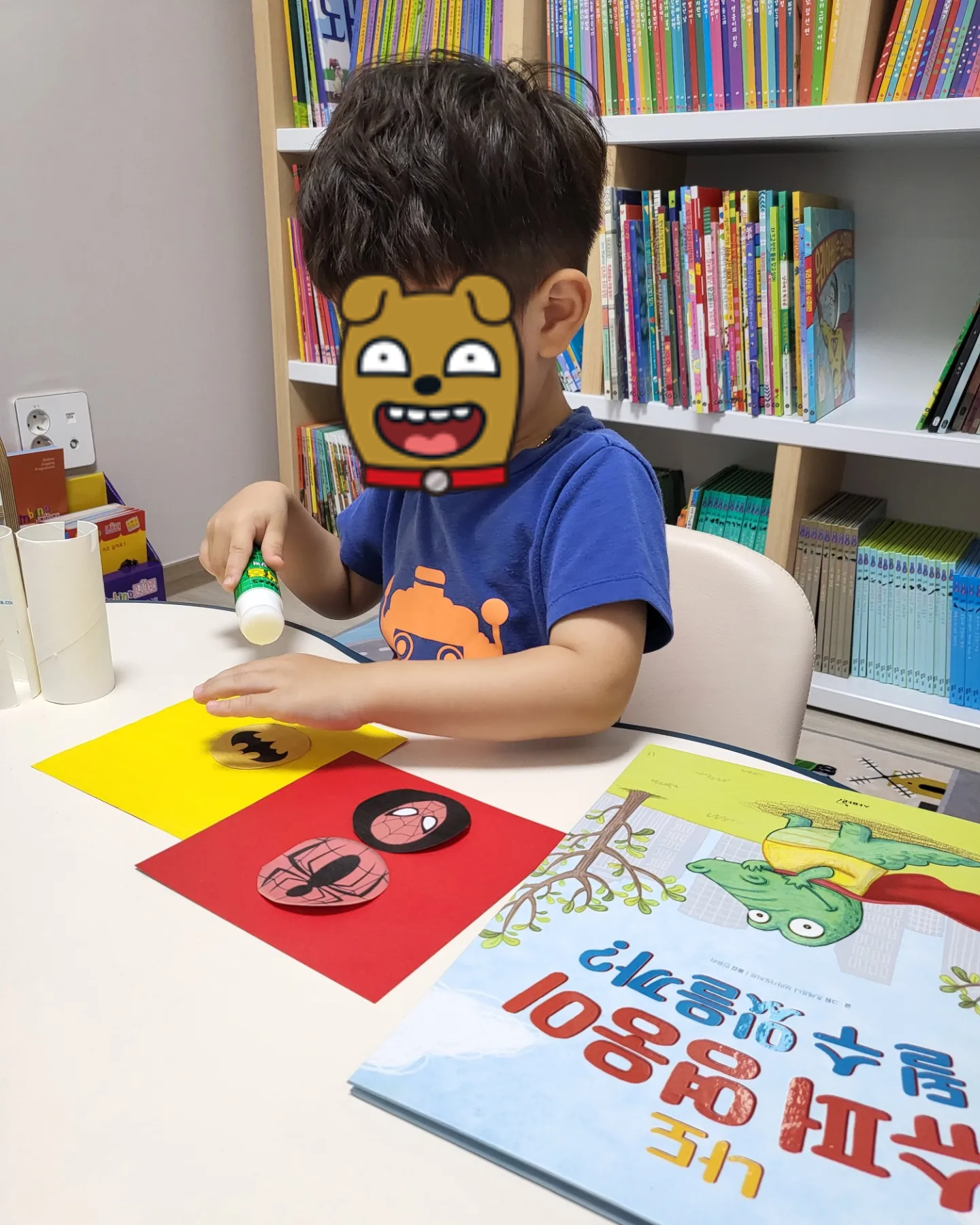아들이 평소 좋아하는 스파이더맨과 배트맨 그림들을 프린트해서 준비해주고