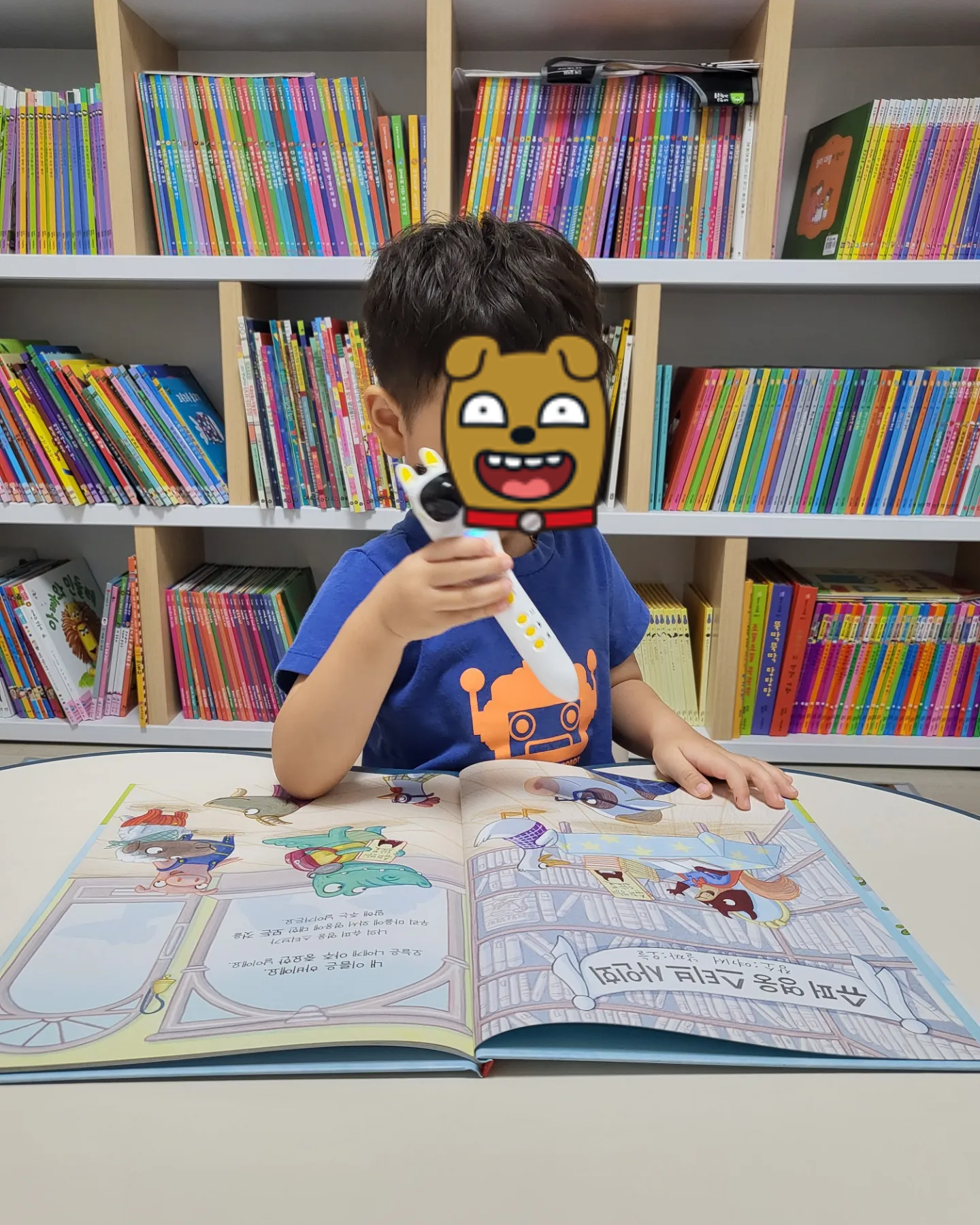 한 번 읽어주고는 사파리 펜을 주니 스스로 읽어보이는 아들.
