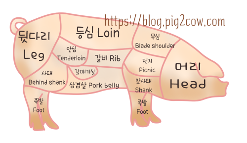 돼지고기 부위별 종류 및 특징(pork) - 돼지고기 부위별 영어