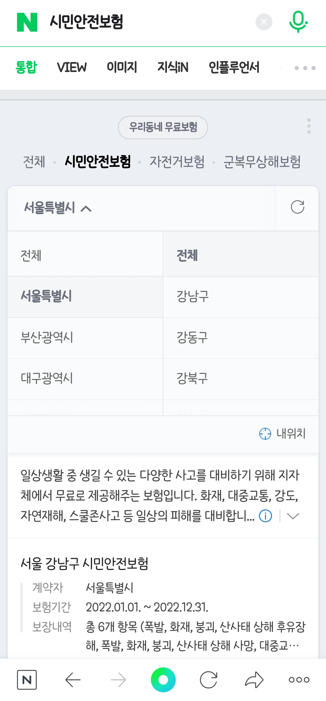 전국의 시민안전보험 정보를 확인할 수 있습니다.