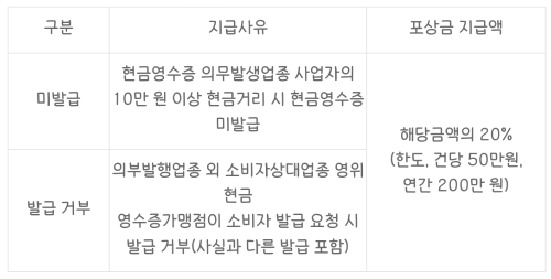 현금영수증을 발급받지 못한 사실을 신고한 제보자에게는 신고포상금을 지급합니다.