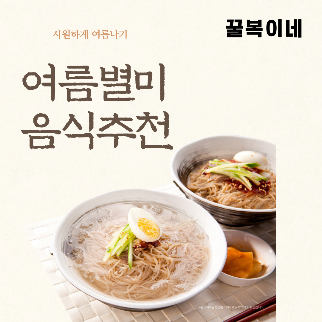 더운 여름 뜨거운 음식이 싫다면 시원한 음식도 있다 바로 냉면이나 메밀 그리고 콩국수 같은 냉국수들... 더울 때 먹는 시원한 국수는 한여름 더위를 식혀줄 최고의 음식이 될 수도 있다.