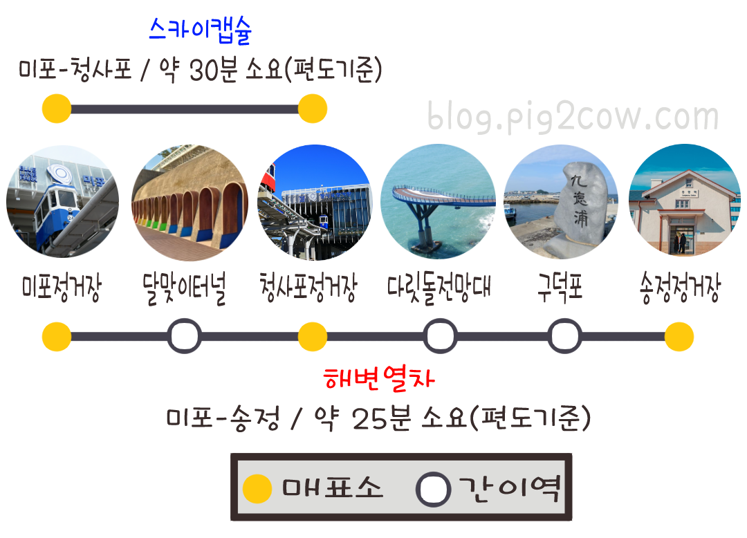 ☑ 해변열차는 10분 전 탑승 마감됩니다.