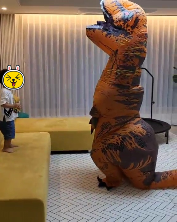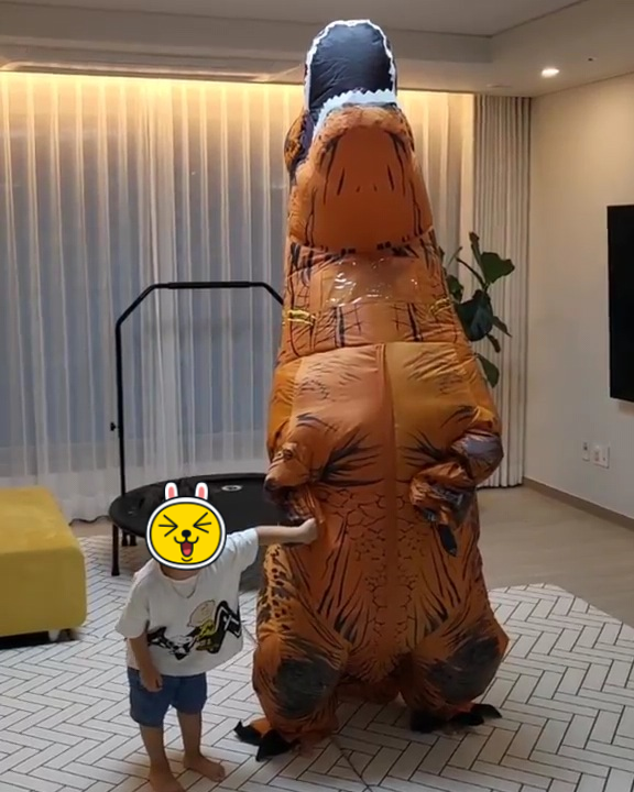 나 아니야~~아빠야~~ 아빠가 공룡 옷을 입고 공룡 흉내를 내는 거야~