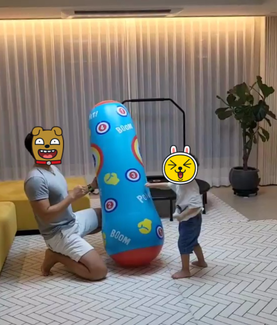 아빠랑 샌드백 펀치로 슈퍼파워를 뽐내보고~