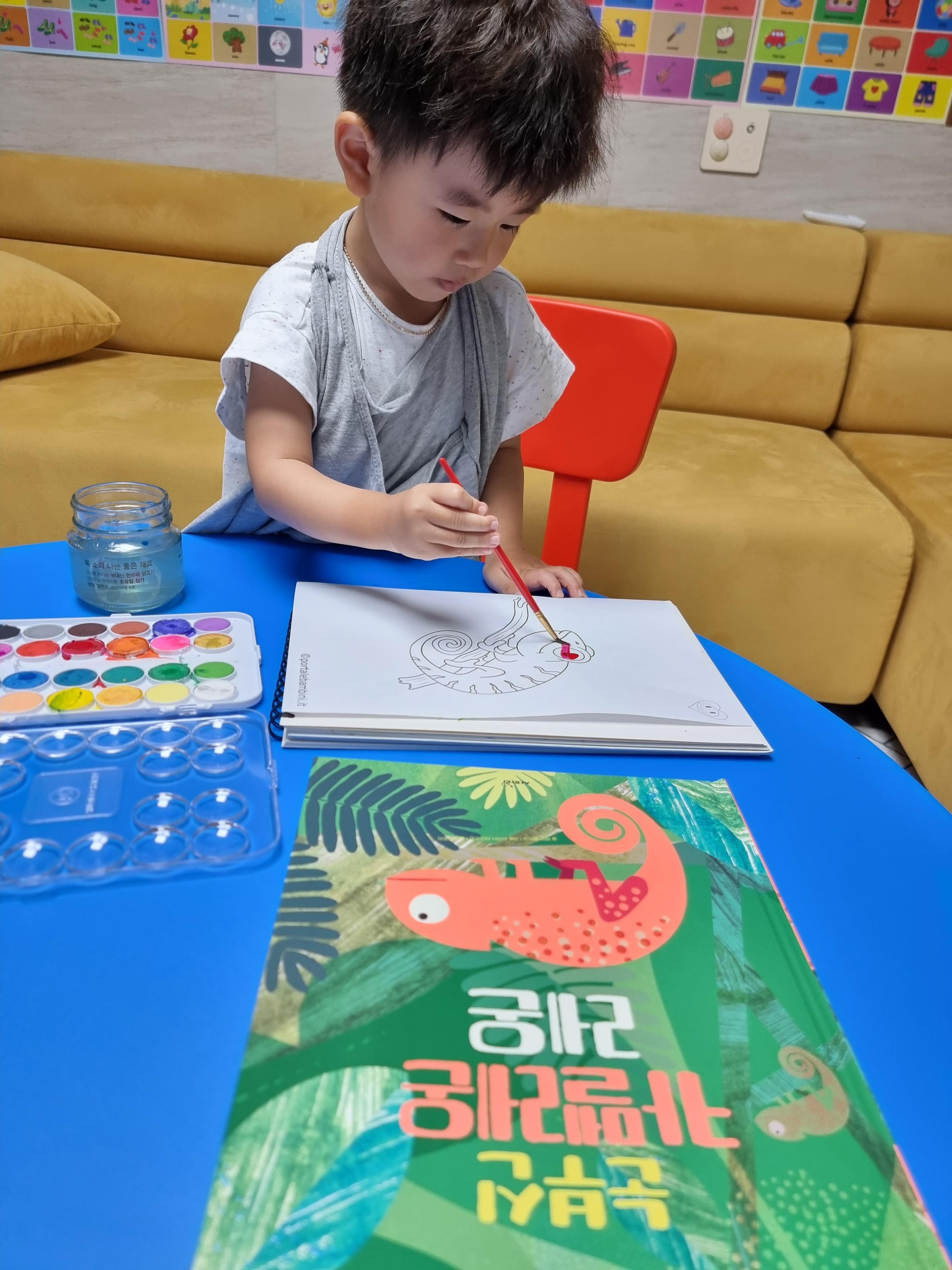 빨간 카멜레온을 그렸답니다.