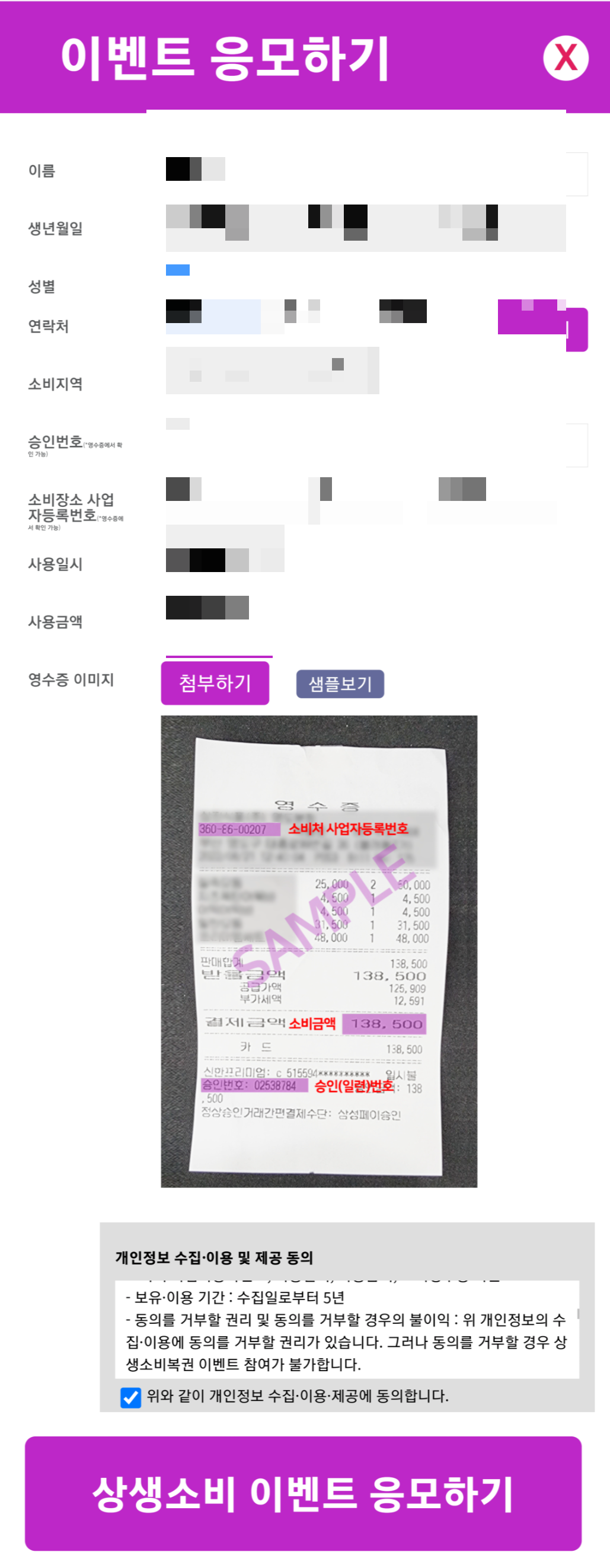 ☑ 입력하신 정보와 영수증 사진이