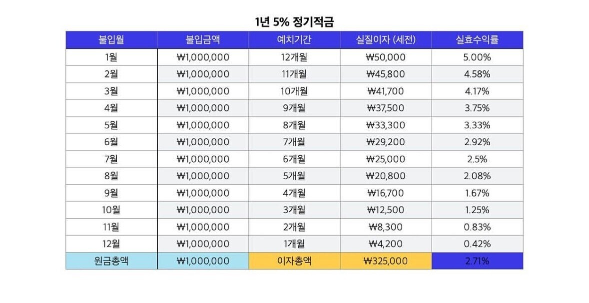 현재 5% 예금/적금, 세전으로 2.7%, 세후로는 1.9~2.2% 받습니다.