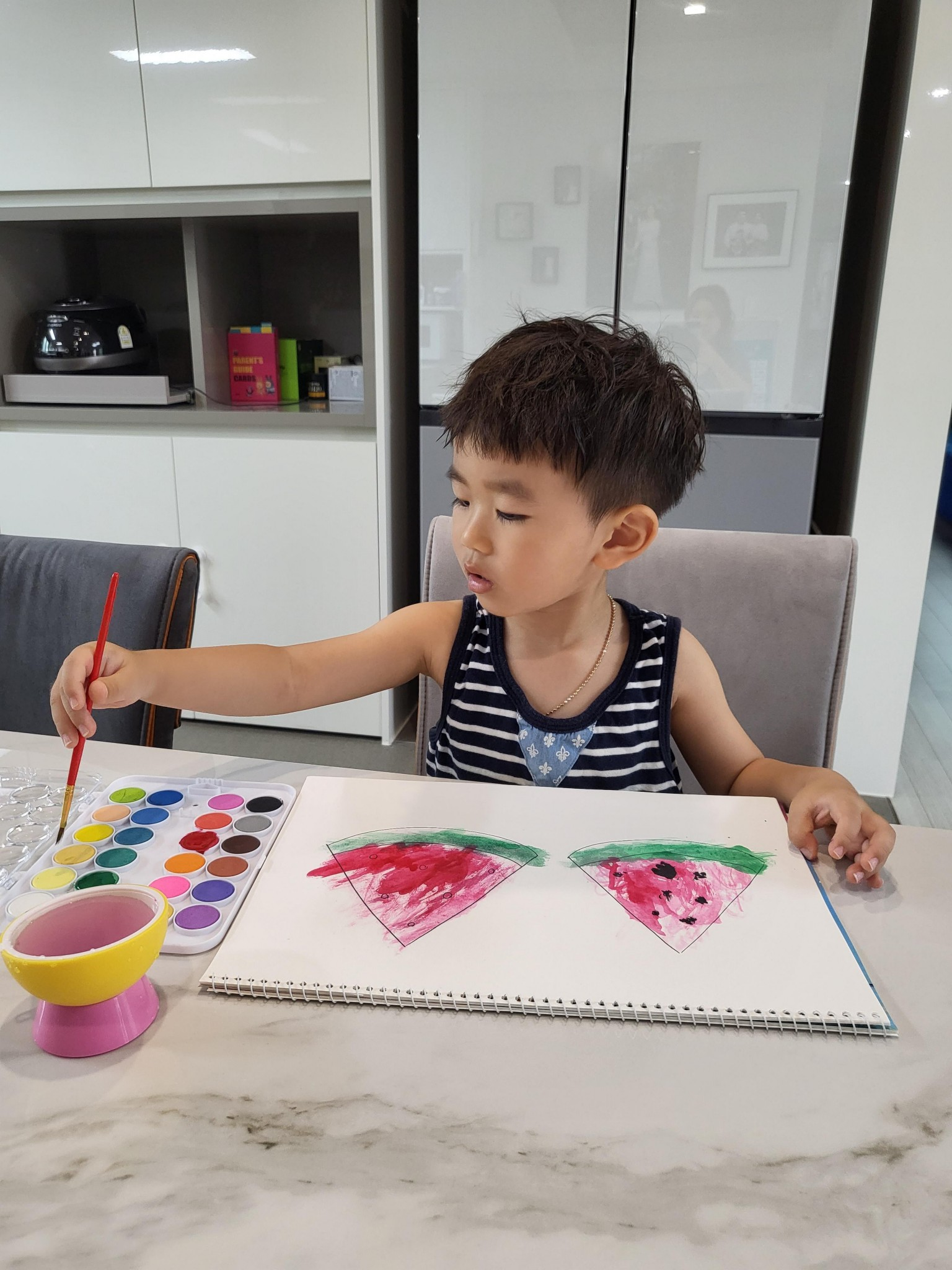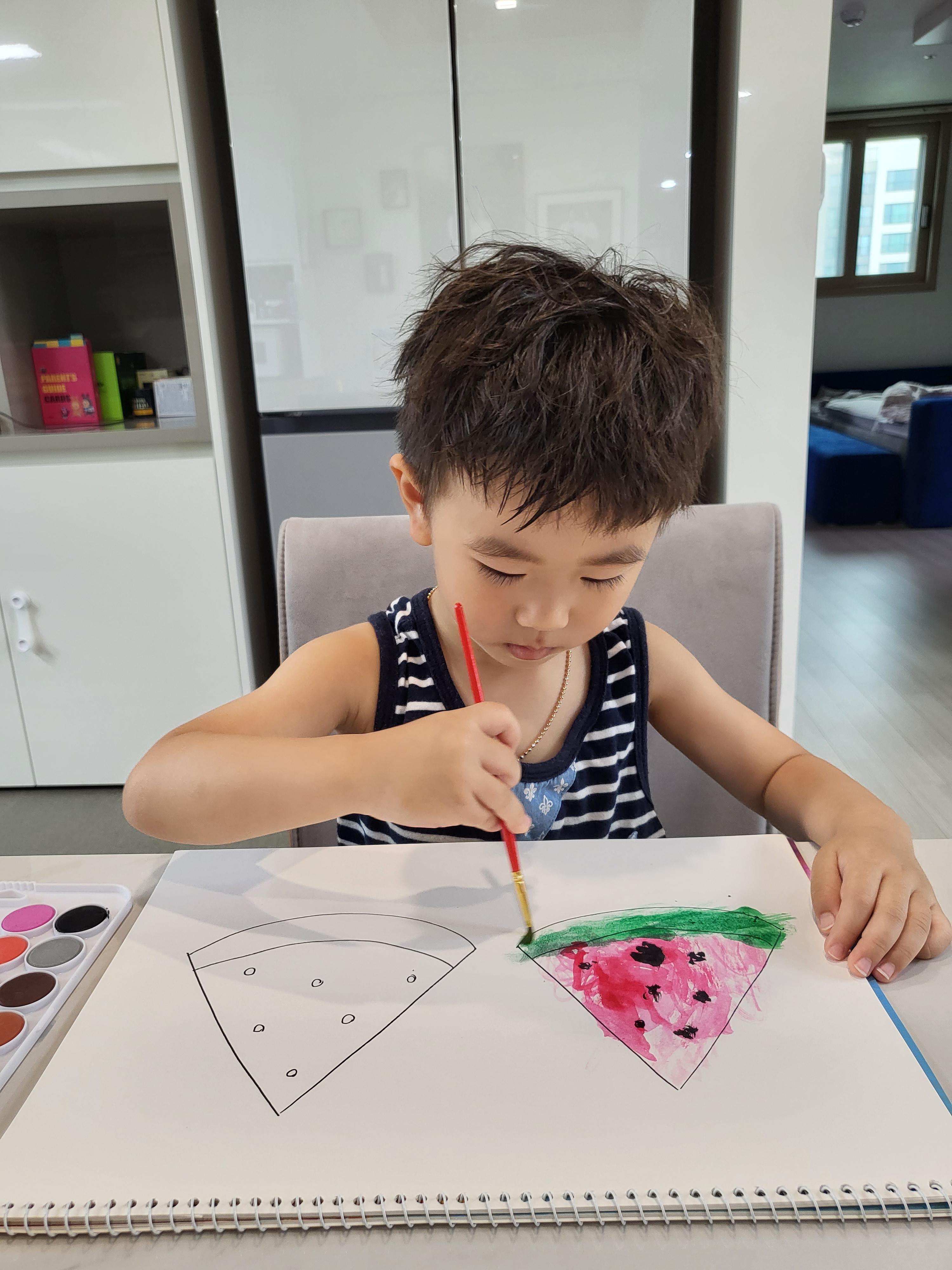 수박 색칠, 수박으로 공놀이, 그리고 여름 대표 과일 아이스크림을 직접 먹으며