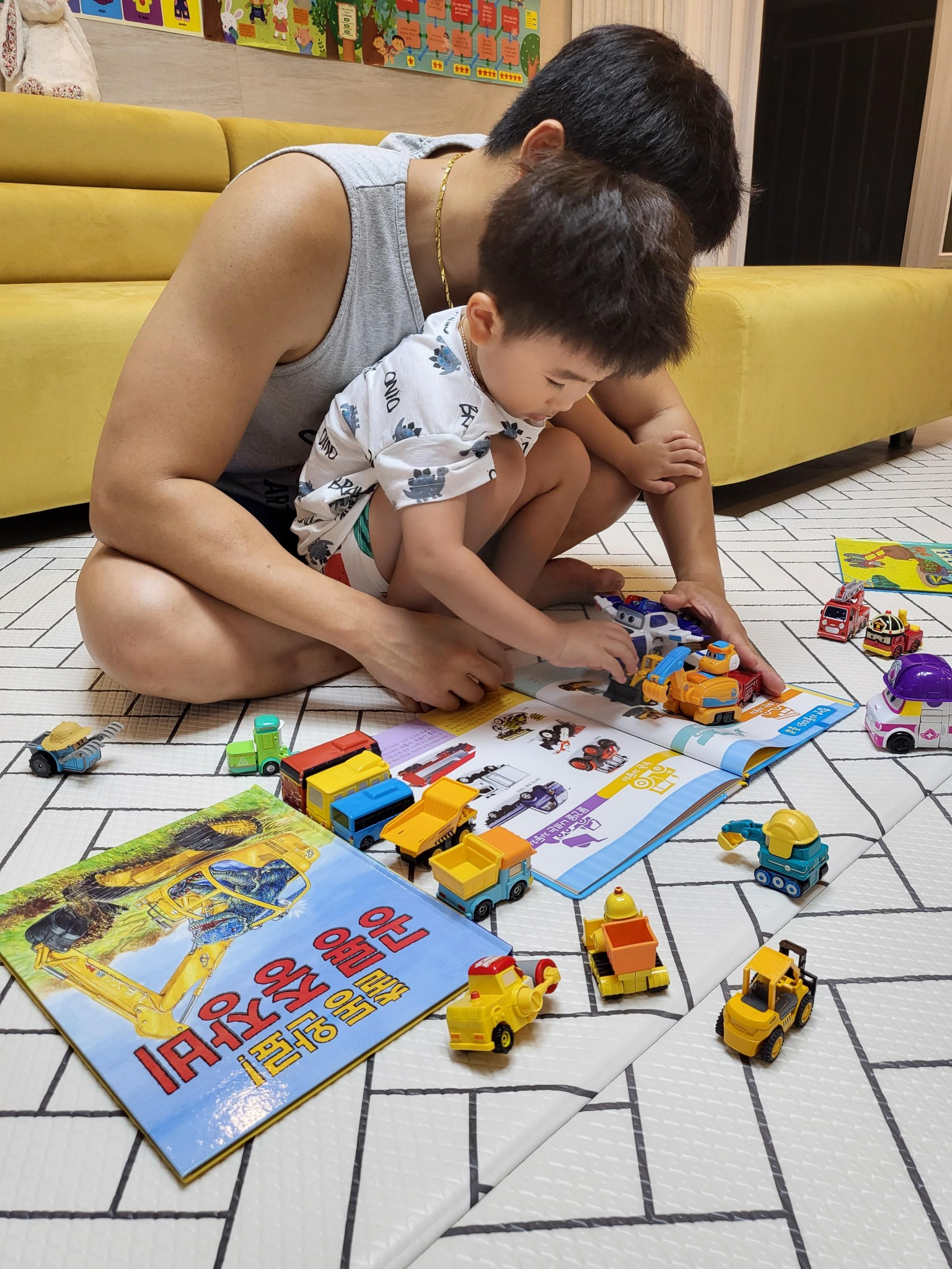 자동차를 워낙 좋아하는 아이라 집에 온갖 자동차가 있었죠.