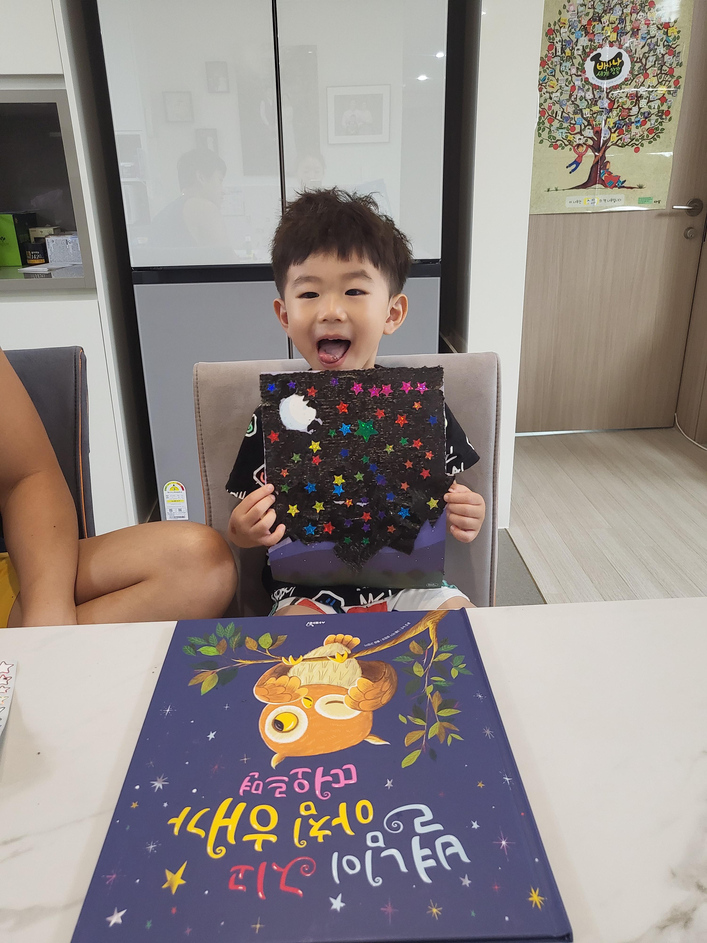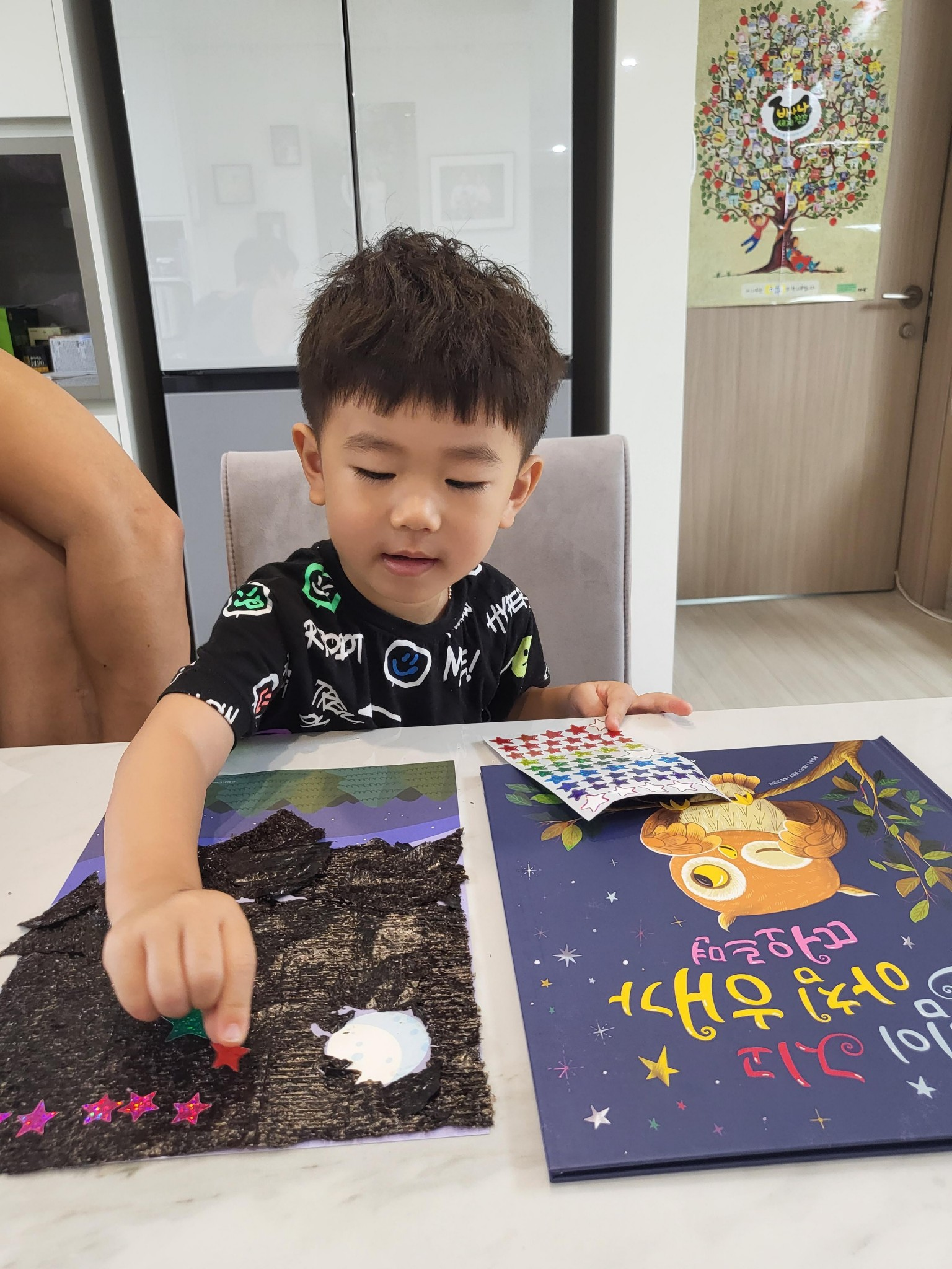 반짝이는 별들을 붙이면서 '반짝반짝 작은 별' 노래를 부르는 아들 ㅎ
