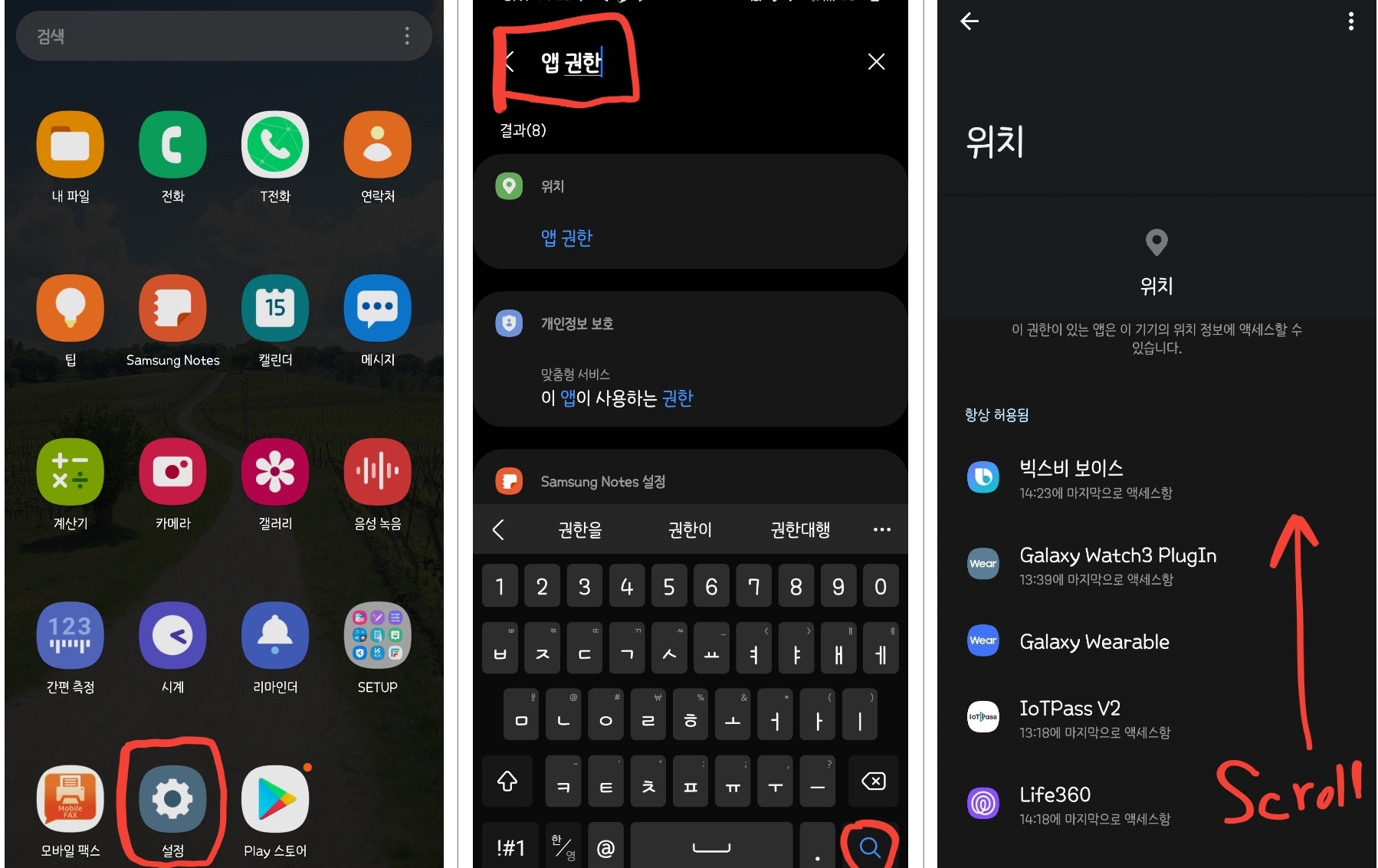 이를 방지하기 위해 “설정”에 들어가 “앱 권한”을 검색해주셔야 합니다. 이때 “앱 권한”이 아니라 “앱 권한”으로 검색해주셔야 하는데요.