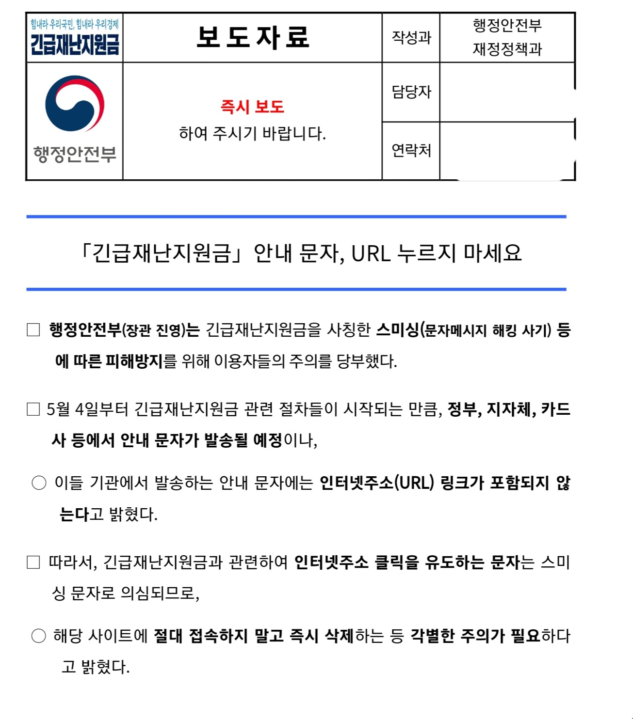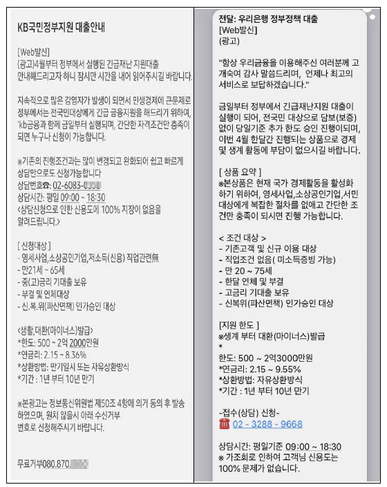 정부지원 대출, 금융권 정부 대출, 긴급재난지원금 대출 등등 문자들 받아 보셨나요?