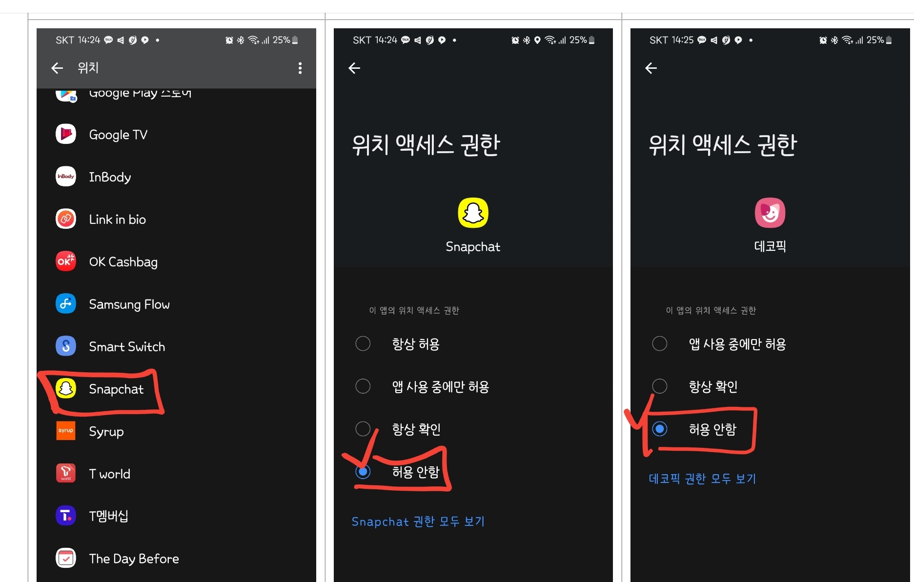 하지만 이 기능을 항상 켜 두고 있으면 어떤 어플을 쓰든 간에 위치가 노출돼서 개인정보가 새어나갈 수 있다.