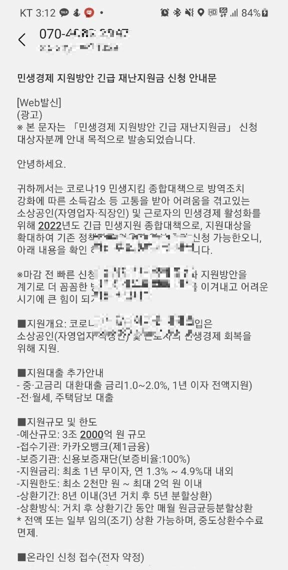 [경제] 정부 대출 문자? 긴급재난지원금? 안내문자 조심. 사기, 보이스피싱 예방법 대처법. 문자 URL 함부로 누르지 마세요.