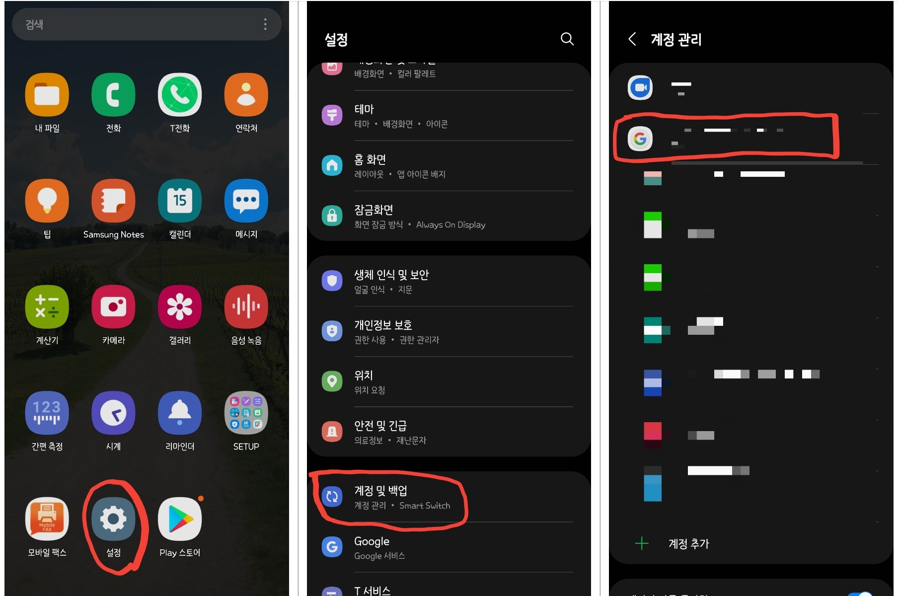 이 또한 “설정”에서 “계정 및 백업”으로 들어가서 “계정(계정관리)”에서 확인해보시면 되는데