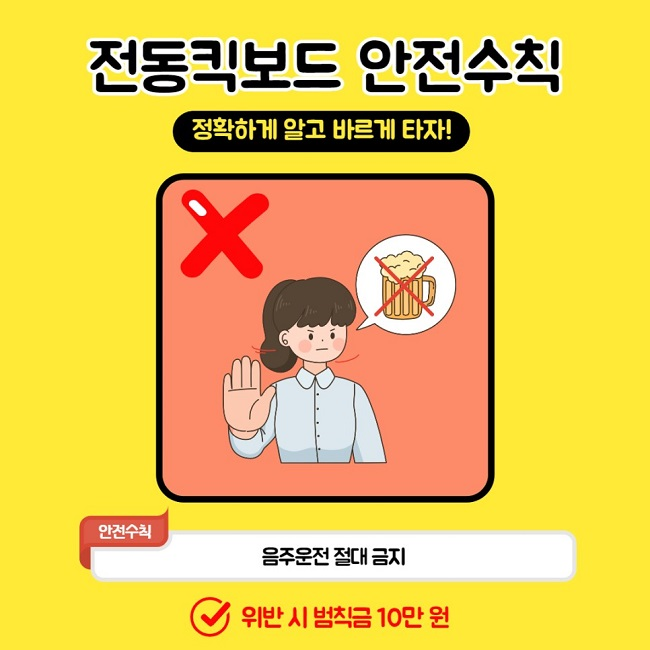 ✔ 전동킥보드 운전자는 음주(약물) 운전 및 운전 중 휴대전화 사용이 금지되며,