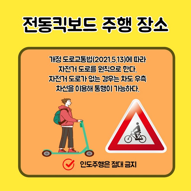 전동킥보드는 자전거도로 통행해야 하며,