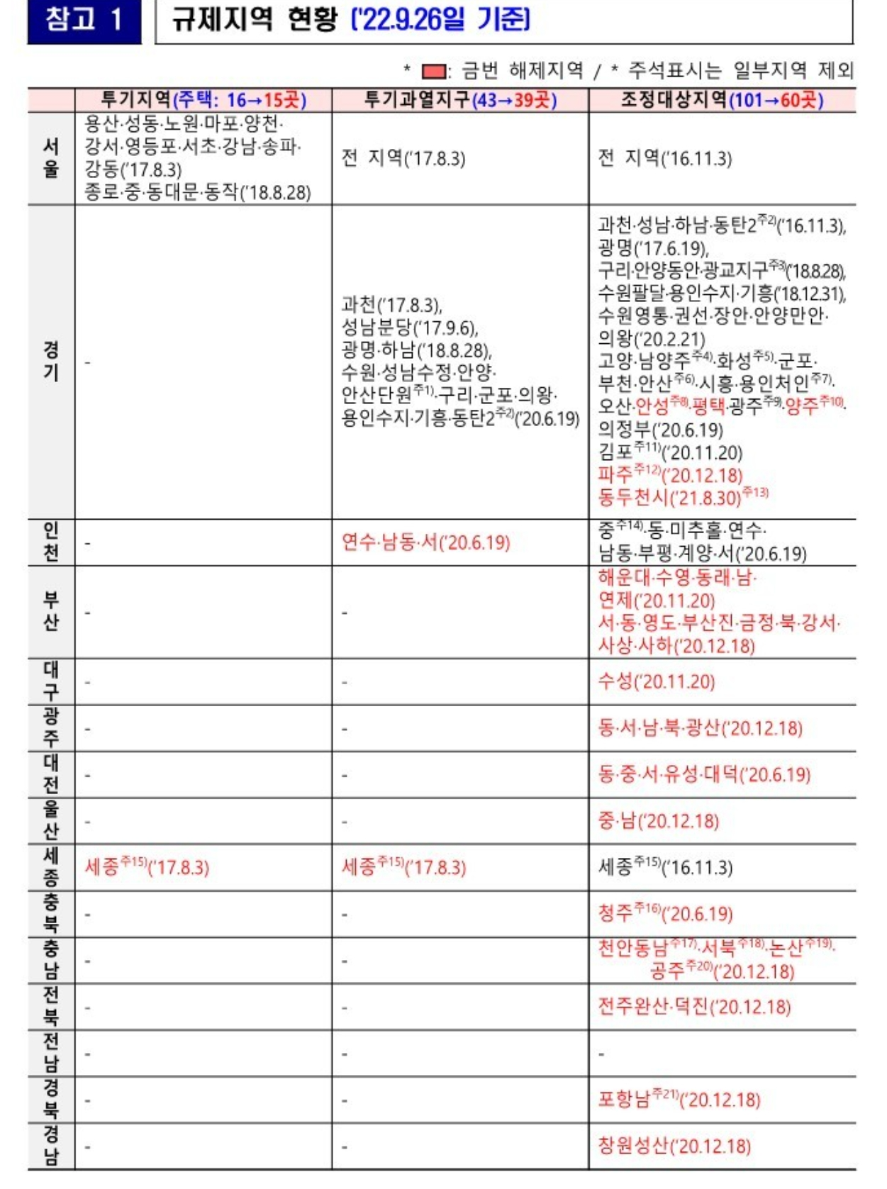 경기도 전역, 인천, 세종 등 전국 규제지역에서 해제
