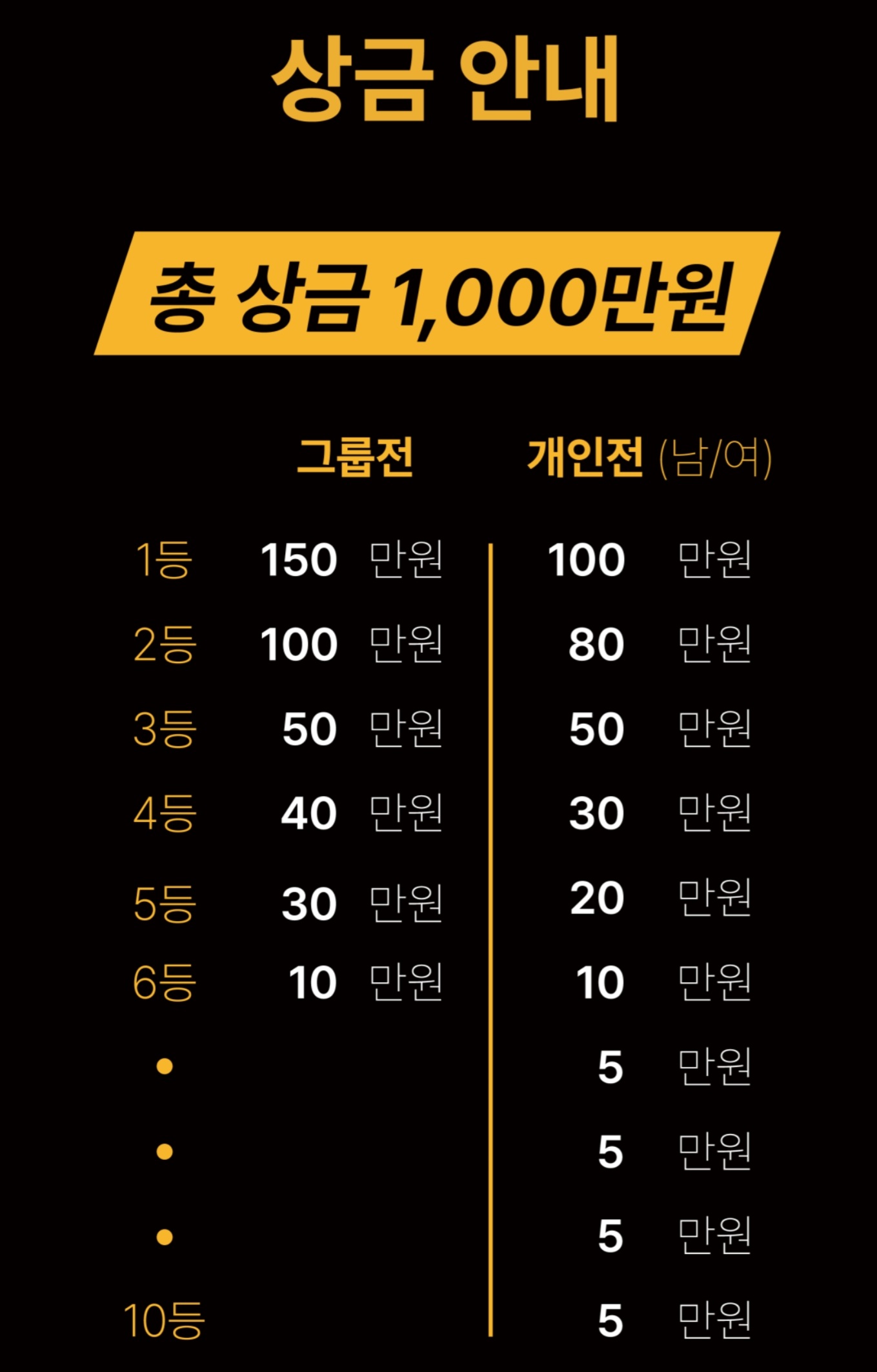단체전으로 이뤄지며 각각 입상자에게는