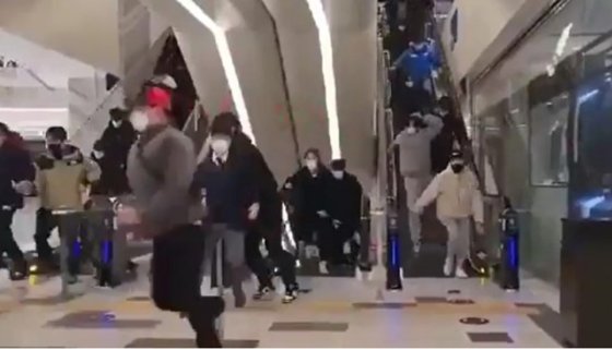 사람들이 매장으로 달려가고 있는 장면입니다.