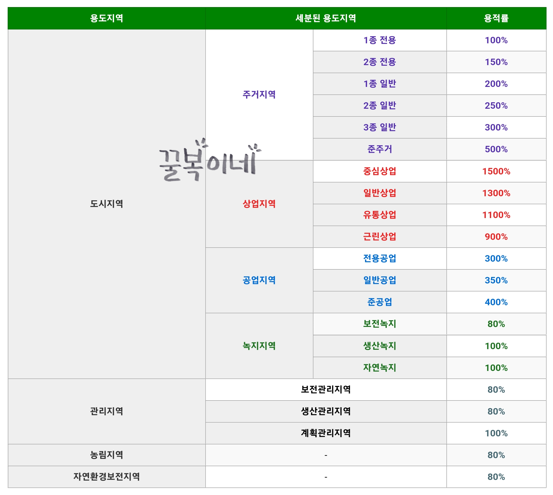 용적률 최대한도는 다음과 같습니다.