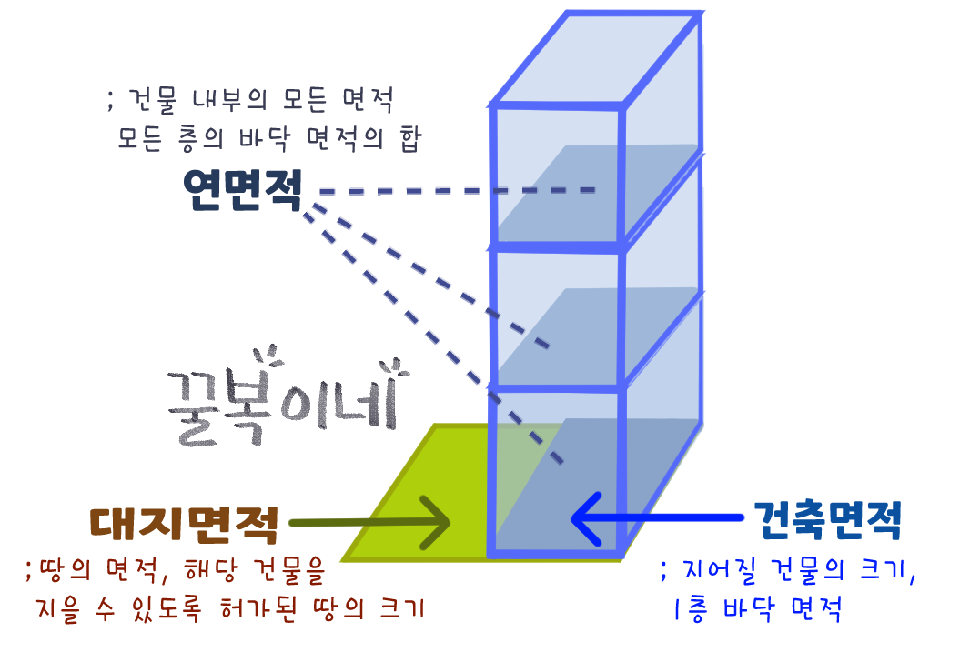 대지면적, 건축면적, 연면적에