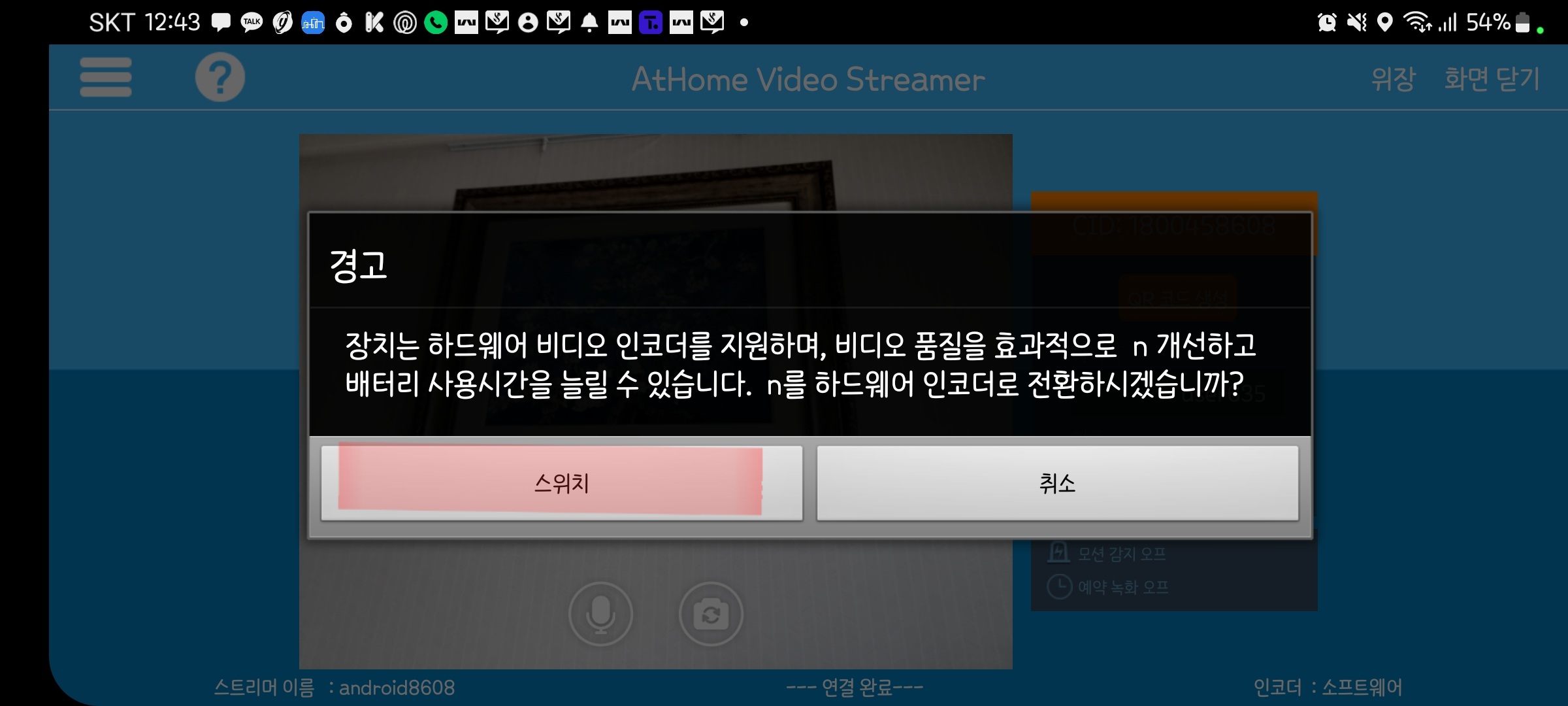 공기기 즉 홈캠 녹화 중인 핸드폰