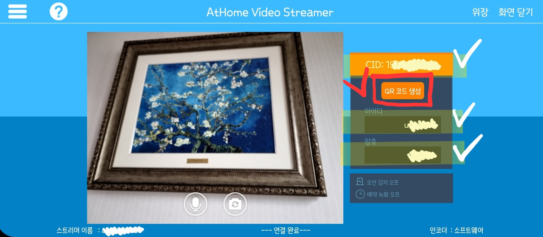 카메라만 작동되면 됩니다.