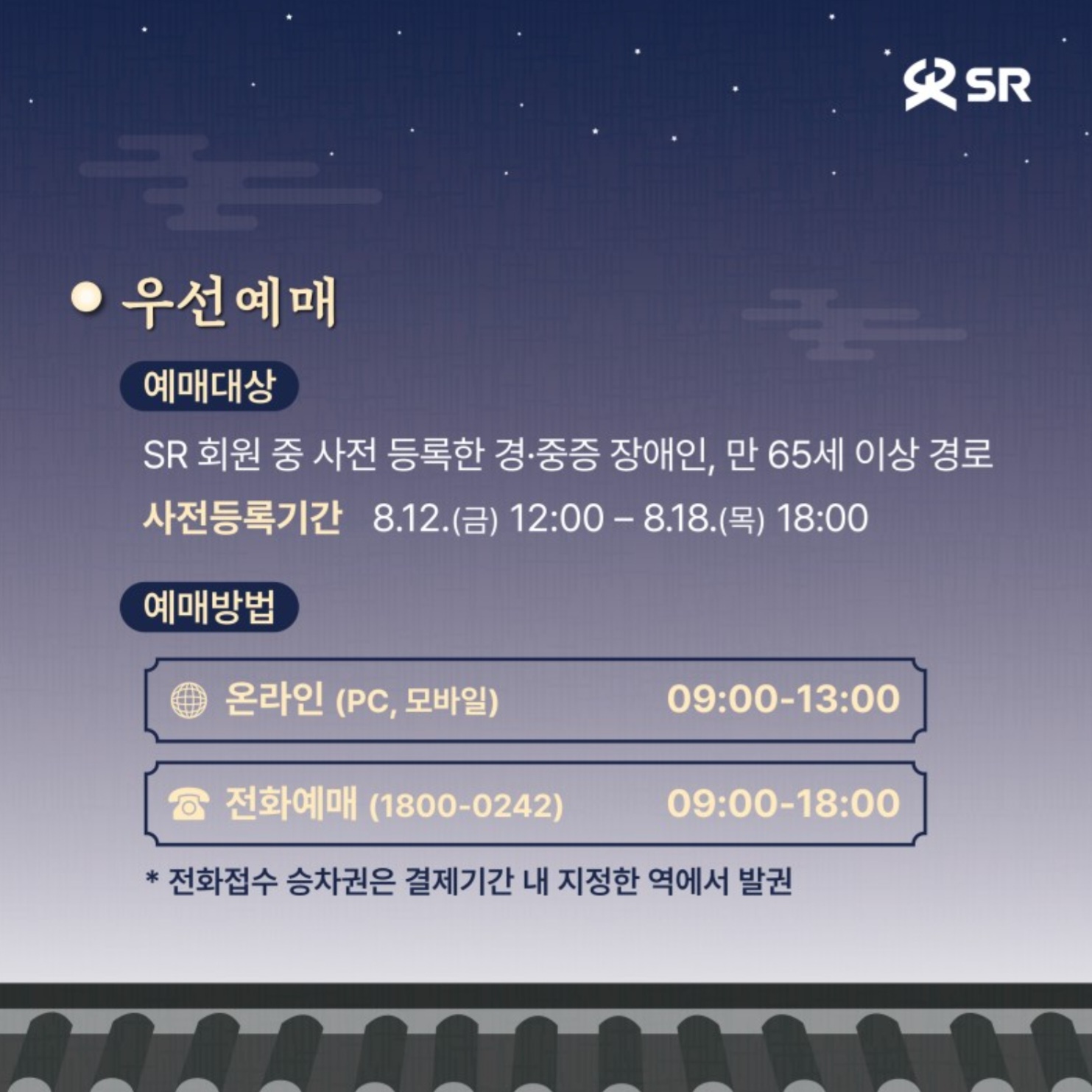 * SR회원 중 만 65세 이상 고객의 경우 사전접수 없이